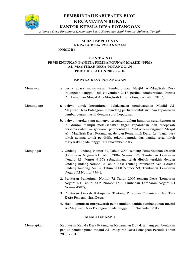 Sk pengurus masjid adalah salah satu sk yang dikeluarkan/ditetapkan oleh kepala desa untuk menetapkan mengangkat susunan pengurus masjid di . 04, 08 januari 2021, besaran siltap dan tunjangan kepala desa dan. Doc surat keputusan kepala desa . Contoh dokumen persyaratan domain indonesia niagahoster. Halaman ini berisi struktur organisasi dkm masjid jami desa.